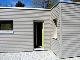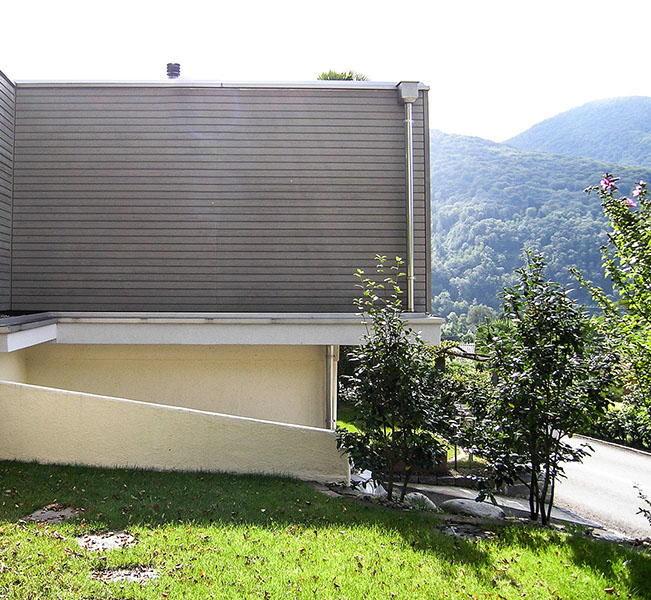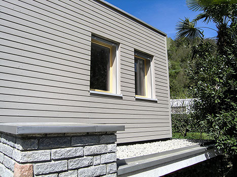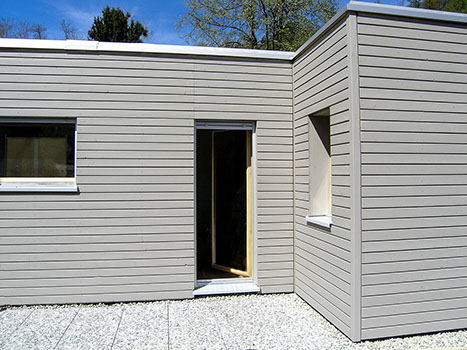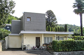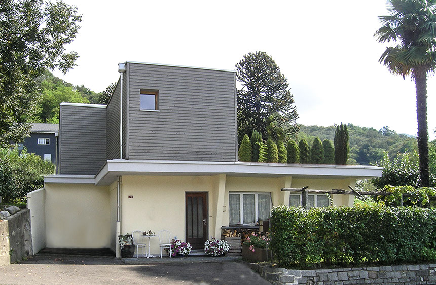 La costruzione esistente risale agli anni 60; il tetto piano e la struttura portante ne rimarcano l’espressione razionalista. L’ampliamento è stato realizzato tramite sopraelevazione con struttura prefabbricata di legno tinteggiato e collegata al piano esistente da una scala interna. Il tetto esistente funge da terrazza per la zona notte e l’ufficio.